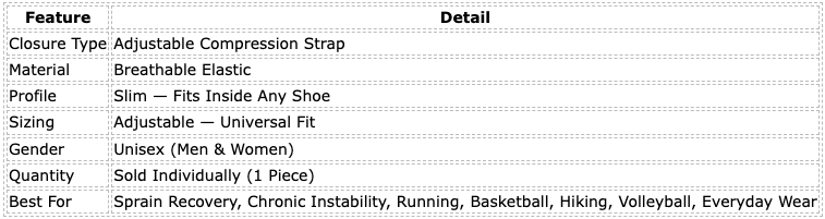 ? Professional Adjustable Strap — Precision Support, Zero Guesswork The adjustable compression strap lets you dial in exactly how much support your ankle needs — wrapping the joint in a stable, locked position that actively prevents rolling and absorbs the impact that causes sprains. Unlike standard sleeves, this brace puts you in control of your support level, rep after rep, step after step.