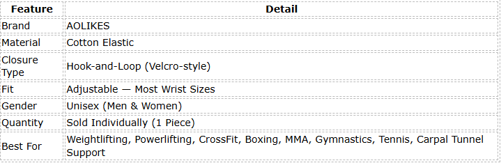 - In the Box: 1x AOLIKES Elastic Wrist Wrap Bandage