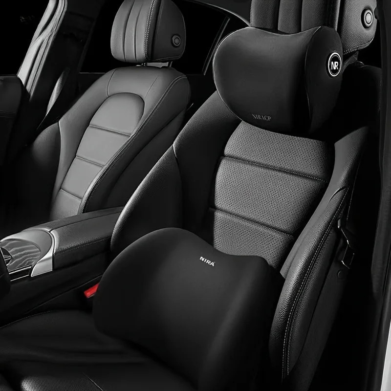 - Headrest Neck Support — End Neck Stiffness Before It Starts The contoured headrest cushion cradles the back of your neck and head in a supported, neutral position — relieving the muscle tension, stiffness, and headaches that come from craning forward or resting against a flat seat back during long drives. Your neck stays aligned, relaxed, and pain-free from departure to destination.