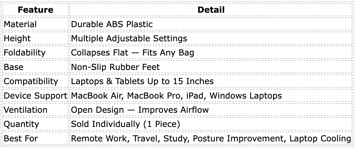 Portable Foldable Laptop Stand for Desk & Travel | Ergonomic Height-Adjustable Screen Riser for Neck Pain & Posture Relief — Fits MacBook, iPad & Laptops Up to 15 Inches